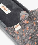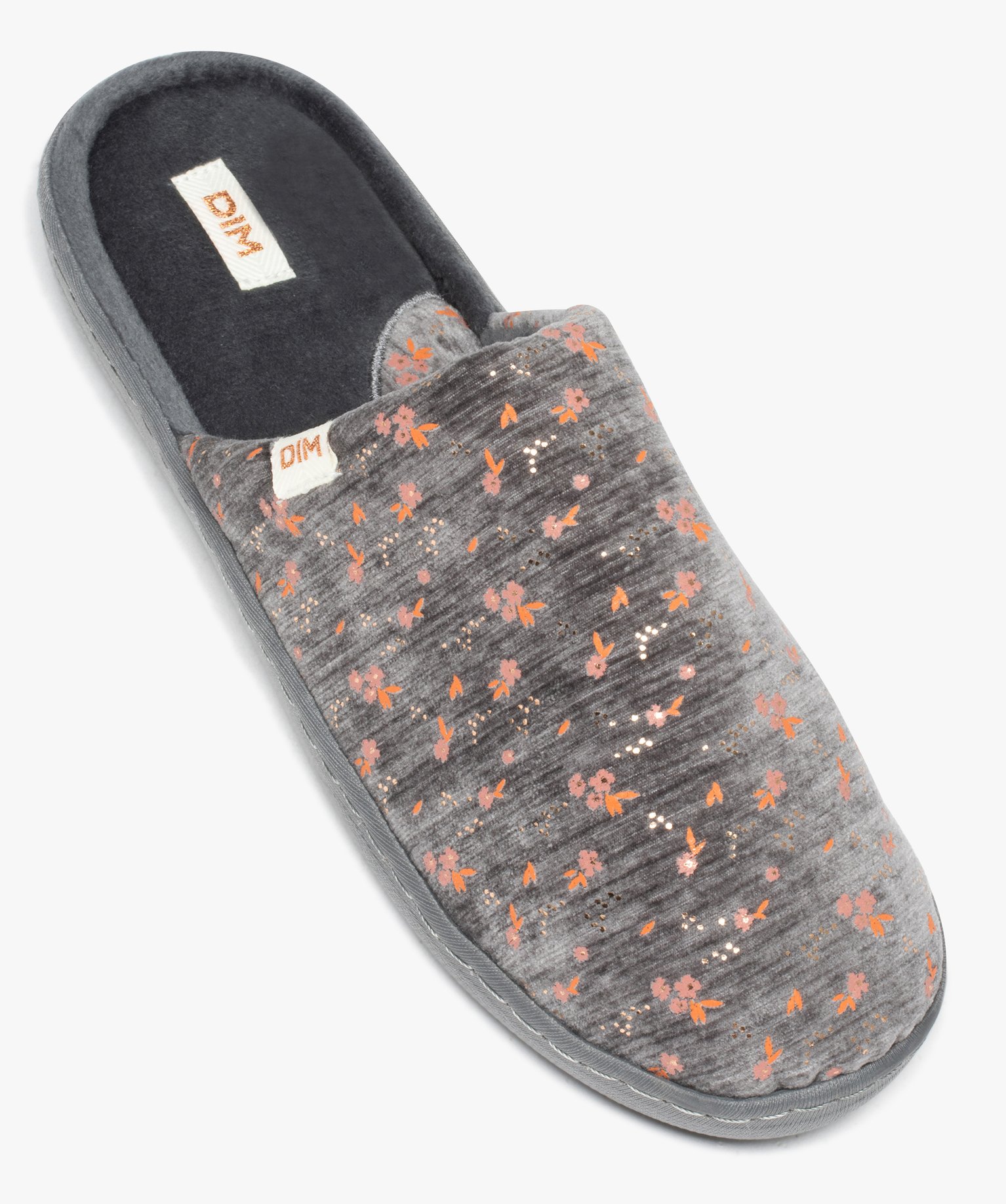 Mules tout confort, on adore la semelle intérieure moelleuse et sa texture velours. Dim propose un modèle de chaussons pour femme tout doux à l'extérieur aussi. Des petites fleurs pour motif viennent féminiser le tout. Pour détendre les jambes, la semelle surpiquée est plus rigide et légèrement compensée. Elle est également anti-dérapante.