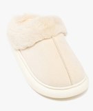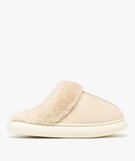 Chaussons femme mules à col duveteux et semelle plateforme - Banana Moon nude