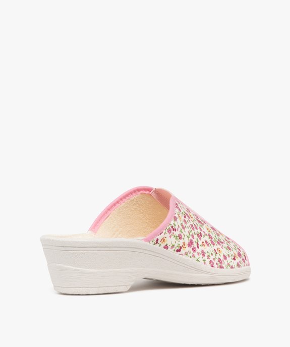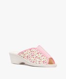 Chaussons femme mules confort compensées en coton style champêtre rose