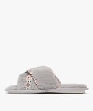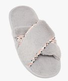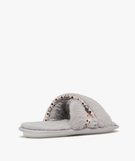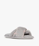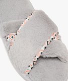 Ces charmants chaussons pour femme prennent la forme de mules à brides croisées. Ouverts à l'avant et à l'arrière, ils sont parfaits pour les intérieurs chauffés, quelque soit la saison. La fourrure imitation réchauffe les pieds et rend ce modèle irrésistiblement doux. Un joli liseré à motif ethnique met en valeur ce modèle d'intérieur et sublimera tous vos pyjamas et nuisettes. Semelle intérieure moussée.