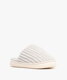 La paire incontournable pour garder vos pieds au chaud et apporter du confort à vos moments de détente, les mules d'intérieur. Ces chaussons pour femme s'habillent d'un textile doux à l'intérieur comme à l'extérieur. L'aspect côtelé du dessus en velours est réconfortant et peut joliment contraster avec vos tenues de nuit. Insertion facile du pied.