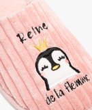 Toutes les "reines de la flemme" vont adorer ces mules d'intérieur, douces et confortables. Le petit pingouin couronné sur ce bandeau en velours côtelé et rembourré, les rend adorables et fun à la fois. Laissez vos pieds plongés dans ces chaussons pour femme à la semelle moelleuse. Confection souple et légère.