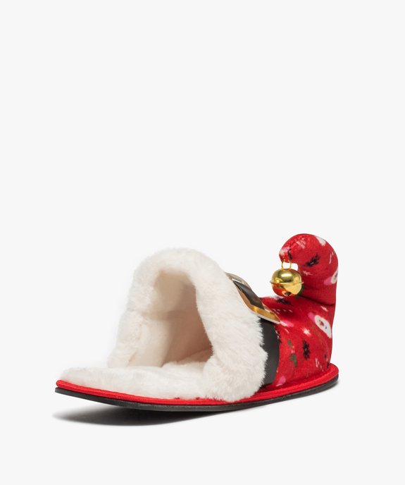 Apportez une vraie touche de fantaisie à vos soirées hivernales avec ces chaussons de Noël ! Confectionnés en forme de mules plates, ils arborent une tige en feutrine imprimée d’un motif Père Noël, sapins, houx, etc. Bride en forme de ceinture sur le dessus. Col et semelle intérieure tapissés de textile synthétique fourrure imitation. On adore le bout pointu qui remonte sur le dessus, terminé par un grelot. Ecoutez : les cadeaux approchent ! Des chaussons pour femme à adopter sans tarder.