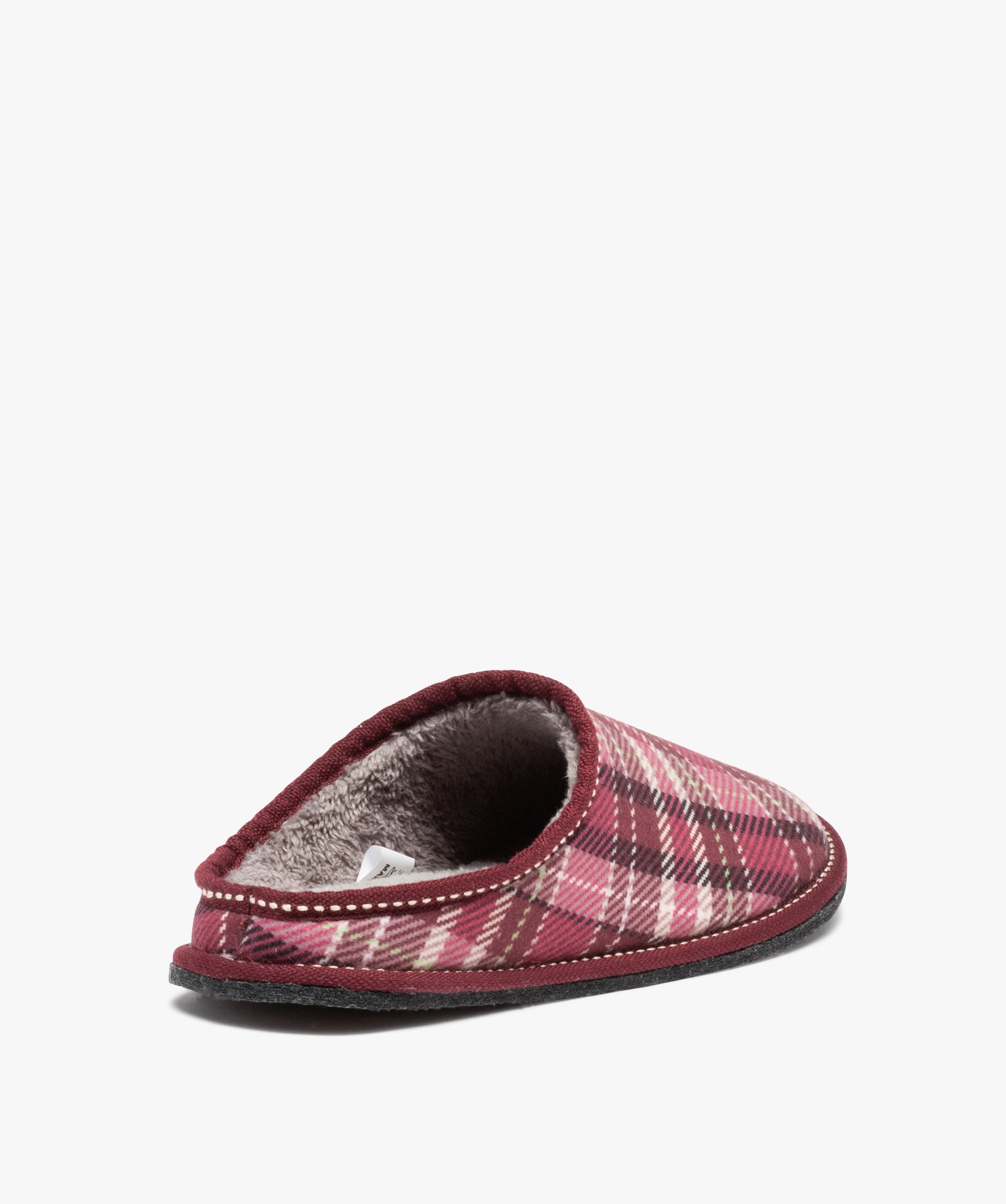 Laissez-vous tenter par ces chaussons femme tout doux, vous ne le regretterez pas ! La tige est en velours ras imprimé de carreaux écossais sur le dessus. Quant à l’intérieur, il est tapissé – doublure et semelle – d’un textile velouté doux et moelleux. Ces mules d'intérieur à talon plat disposent d’une forme bien couvrante qui tient bien au pied à chaque pas. Des chaussons incontournables pour cet hiver ! A noter, la semelle d'usure en feutre vous permet de marcher en toute discrétion.