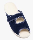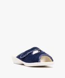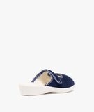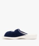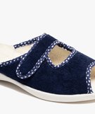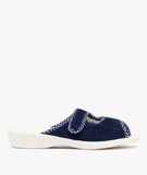 Chaussons femme pantoufles ouvertes à scratch avec liseré coeurs bleu fonce