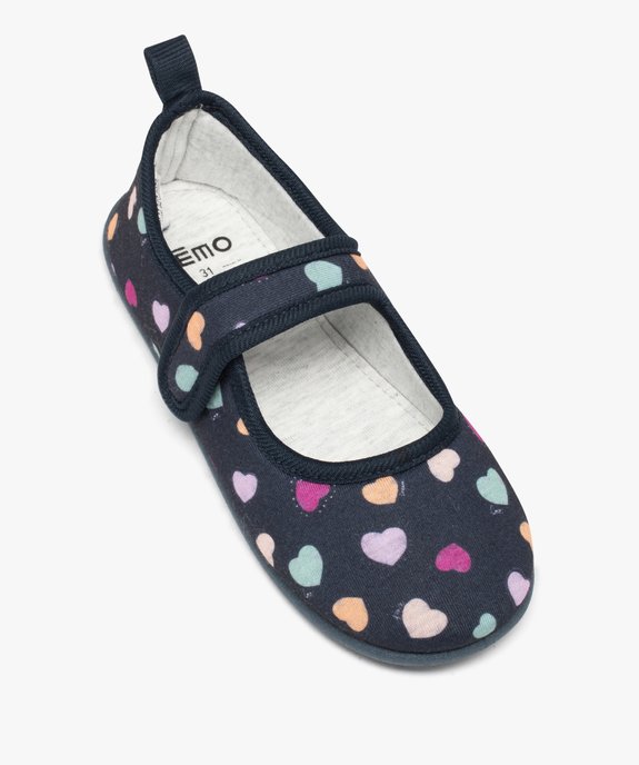 Chaussons fille ballerines à petits coeurs colorés bleu fonce