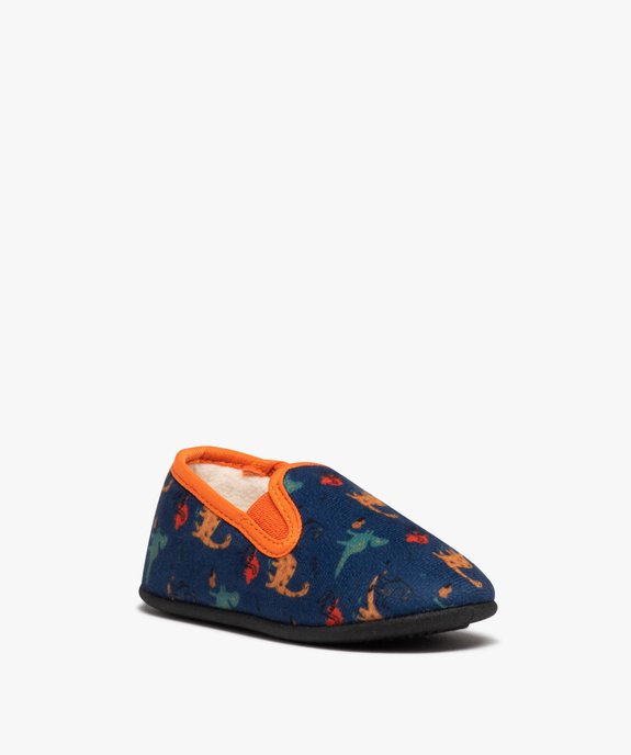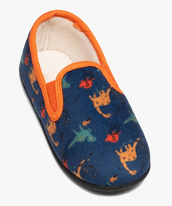 Les petits garçons vont craquer pour ces chaussons à motifs dinosaures. Des pantoufles enfant aux coloris pétillants dotés d’élastiques d’aisance sur les côtés pour faciliter l’insertion du pied. Pour offrir toujours plus de douceur aux enfants, ces chaussons garçon sont confectionnés dans une maille veloutée et doublés polaire, un véritable cocon de douceur pour les pieds. Ils reposent sur une semelle en caoutchouc avec picots antidérapants.