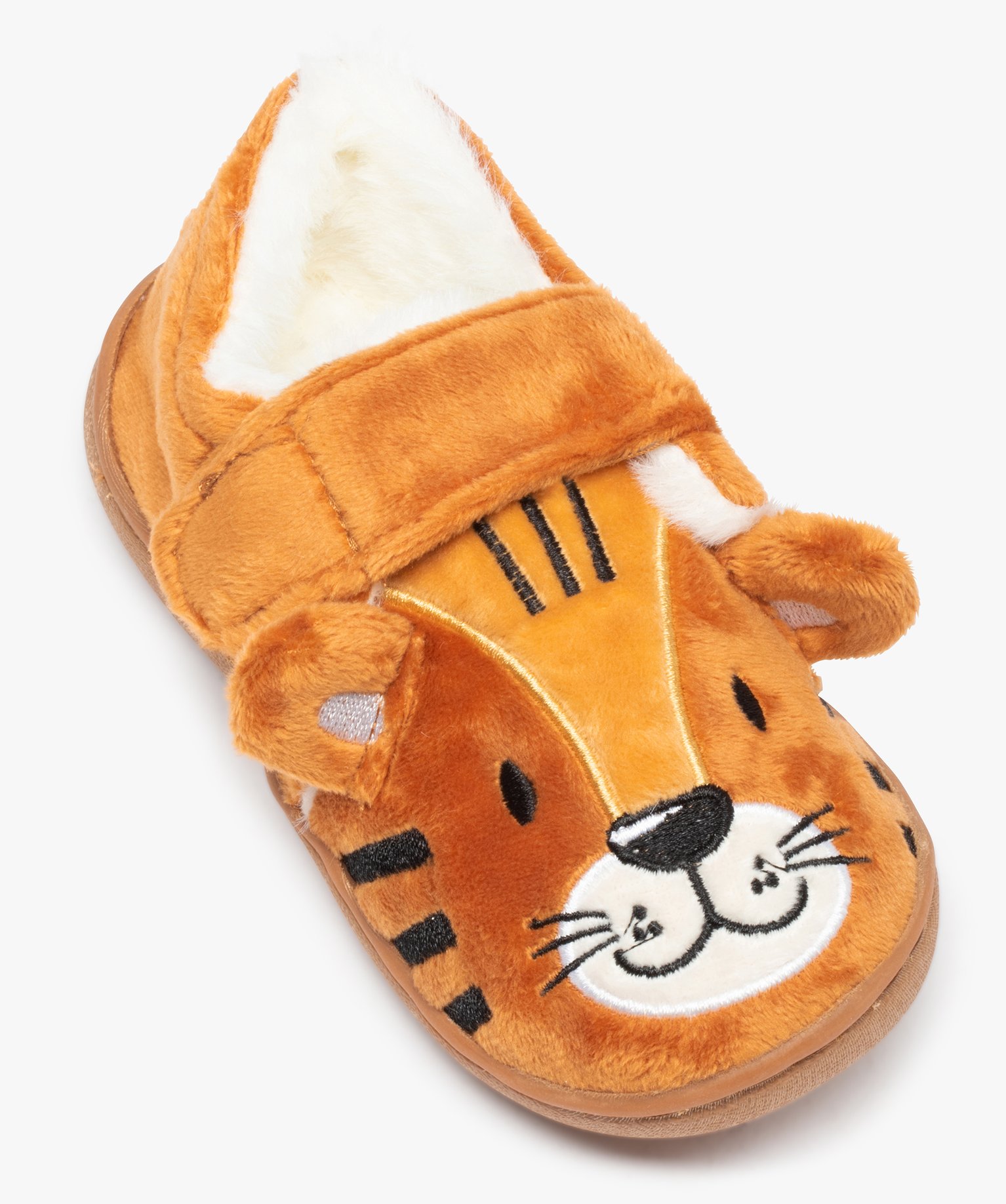 Chaussons garçon en forme de tigre fermeture scratch orange