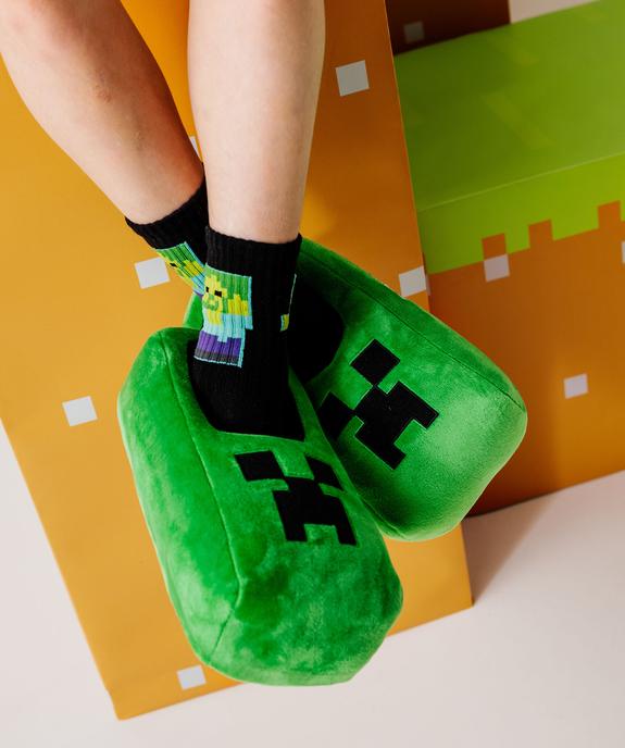 Chaussons garçon en volume à bout carré Minecraft vert