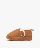 Chaussons garçon unis boots fourrées à scratch marron