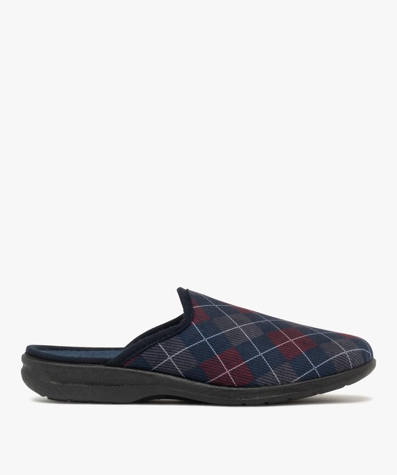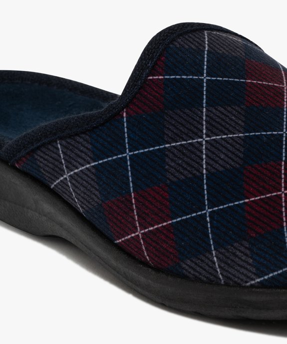 Chaussons homme confort mules en velours ras à carreaux bleu