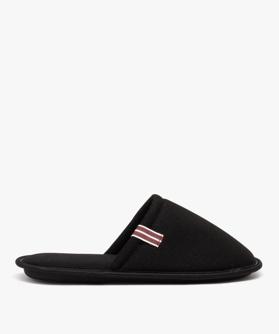 Chaussons homme mules confort unies en tissu côtelé noir