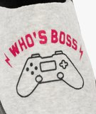 Les as de la console seront ravis d’arborer ces chaussons ! Le dessus est imprimé d’une manette de console de jeux, avec, au-dessus, la mention « who’s boss » : « c’est qui le meilleur » A vous de le montrer ! Des chaussons pour homme en forme de mules plates, confectionnés en velours ras chiné, doux au toucher. Doublure et biais de finition assortis.