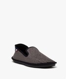 Chaussons homme pantoufles unies en velours ras à motif graphique gris