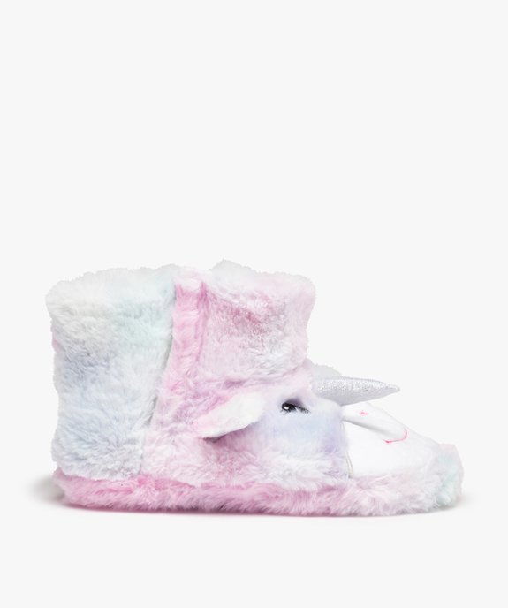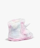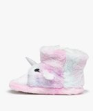 Chauds et confortables, les chaussons boots tiennent bien au pied. Et lorsqu’ils adoptent une forme de licorne, avec les oreilles en relief et une corne pailletée, c’est le succès assuré auprès des filles ! La tige est confectionnée en textile synthétique fourrure imitation aussi doux qu’une peluche. Ces chaussons fille montants sont équipés d’un scratch sur le côté pour faciliter l’insertion du pied. Un modèle phare pour des pyjama party toutes douces, aux couleurs de l’arc-en-ciel.