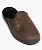 Chaussons mules dessus cuir imitation avec fleur de lys homme[MISSING] marron
