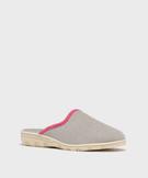 Chaussons femme en forme de mules, idéales pour celles qui ont besoin de se chausser et se déchausser rapidement et facilement. Douillets, les chaussons présentent une tige en éponge et une doublure en jersey. Ils sont équipé d'un petit talon compensé de 3 cm pour rendre la marche plus confortable.