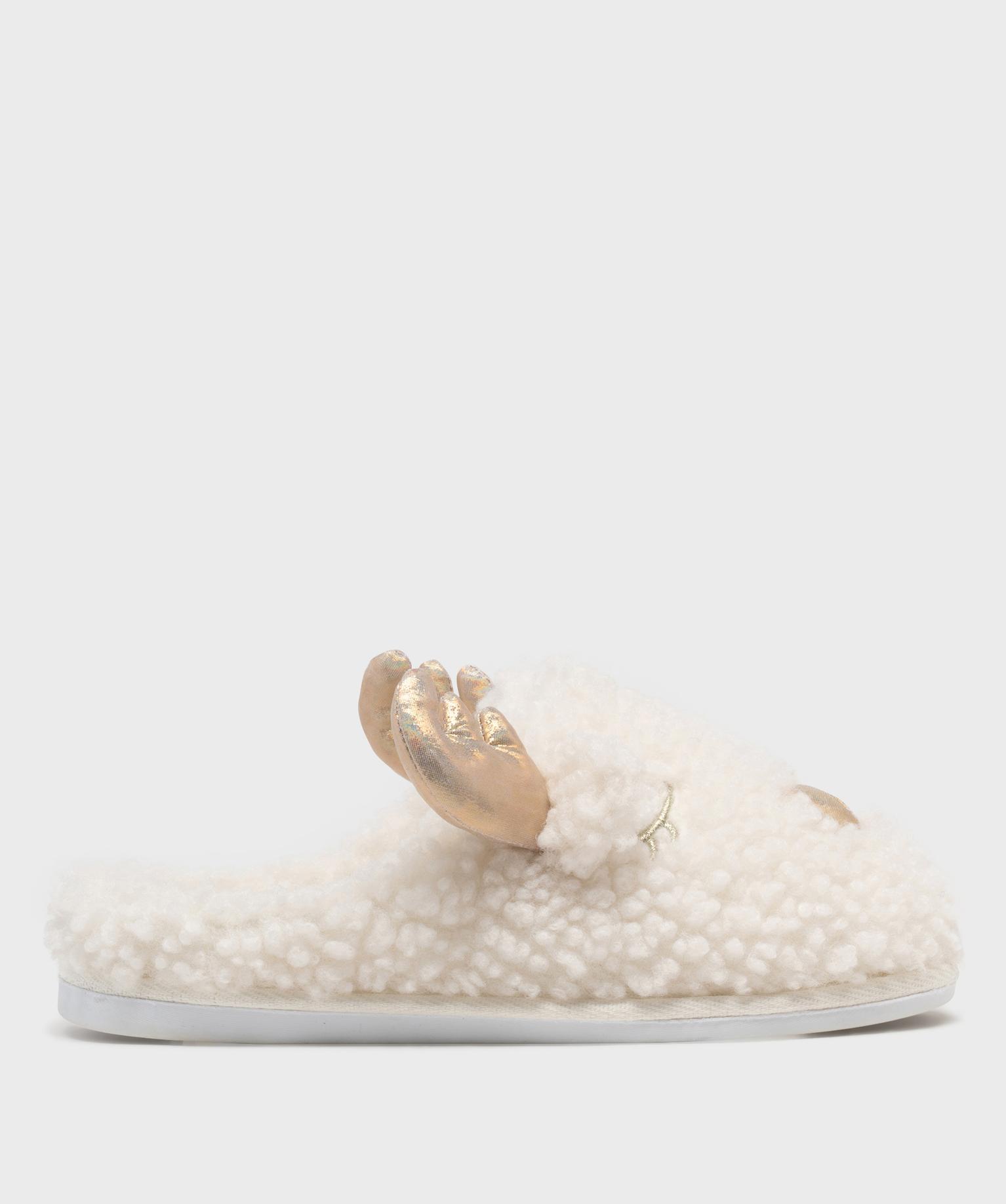 Ces adorables chaussons mules en textile imitation laine de mouton ajouteront une touche de fun aux tenues d’intérieur lors des fêtes de fin d’année, mais aussi tout le reste de l’année ! Des chaussons pour femme en forme de tête de renne, avec des oreilles et des cornes en relief, illuminés par des touches scintillantes. Aussi moelleuses à l’intérieur qu’à l’extérieur, ces mules d’intérieur prennent soin des pieds tout en vous assurant un look craquant.