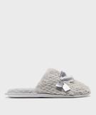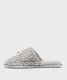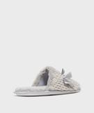 Chaussons mules en fourrure imitation à pois dorés femme gris