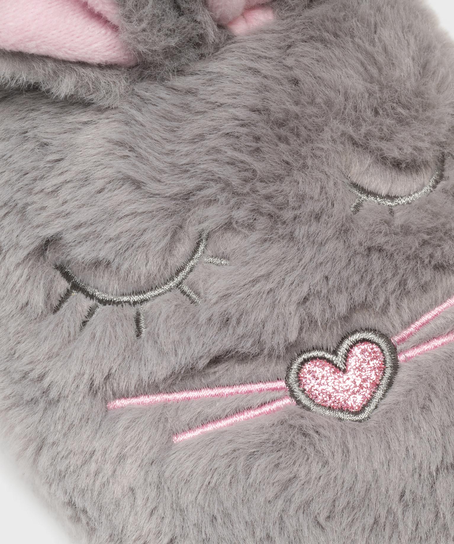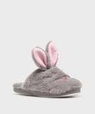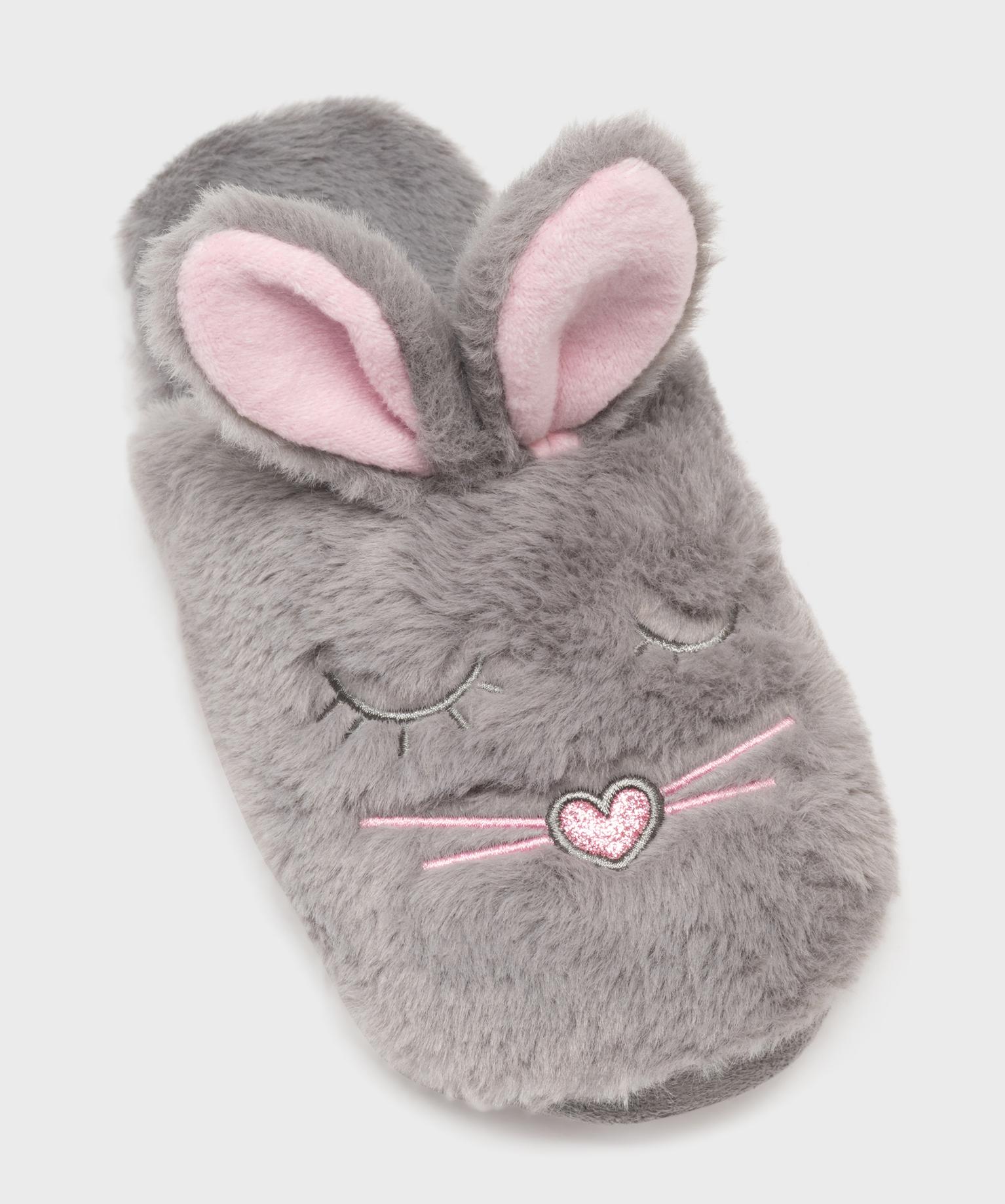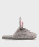 Chaussons mules en fourrure imitation avec oreilles de lapin femme gris clair