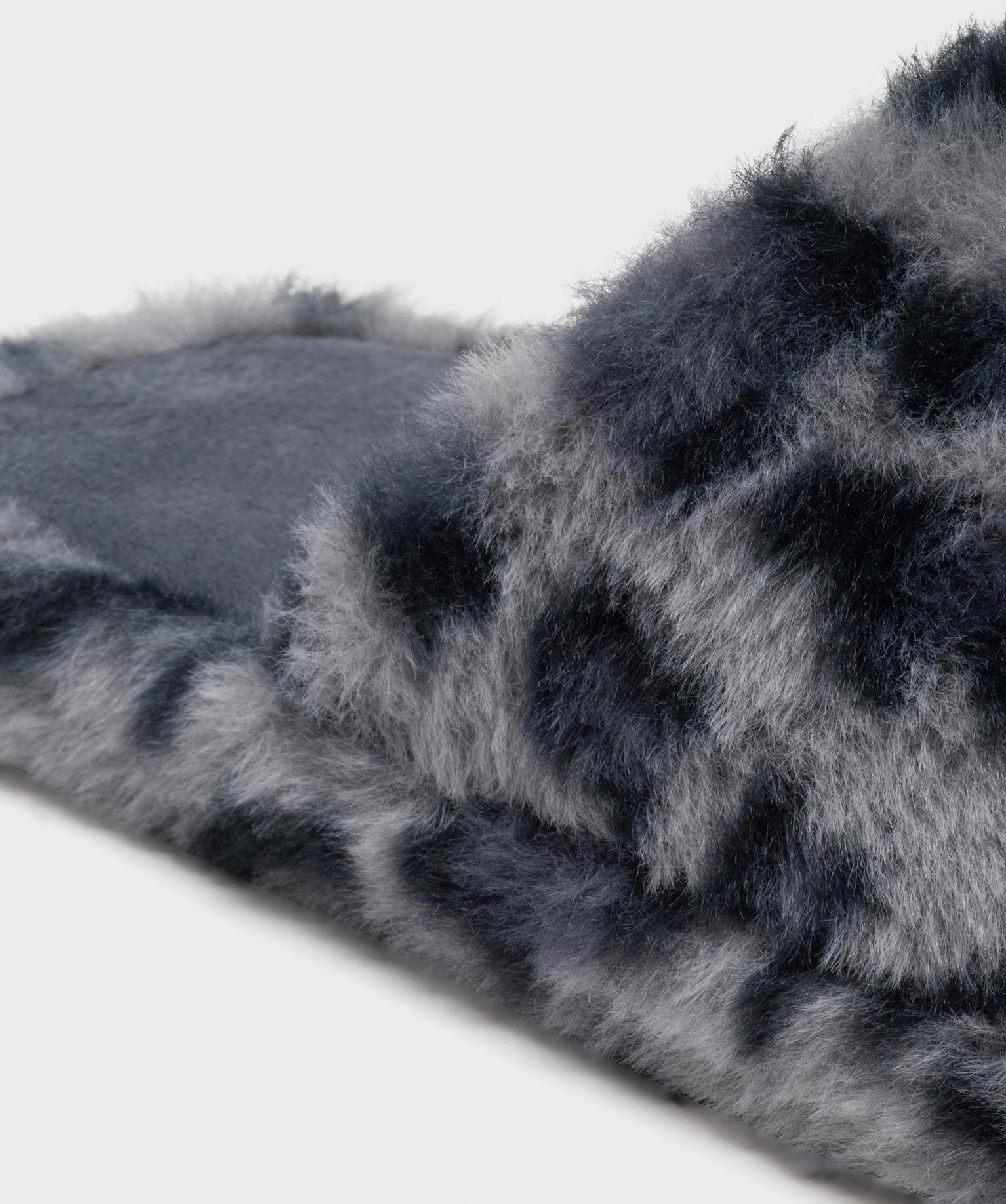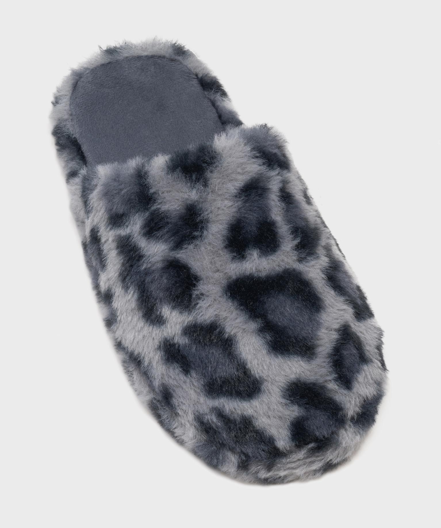 Chaussons mules en fourrure imitation imprimée léopard femme bleu