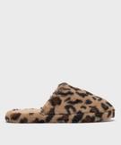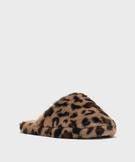 Chaussons mules en fourrure imitation imprimée léopard femme marron