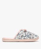 Chaussons mules en toile à motifs fleuris femme bleu