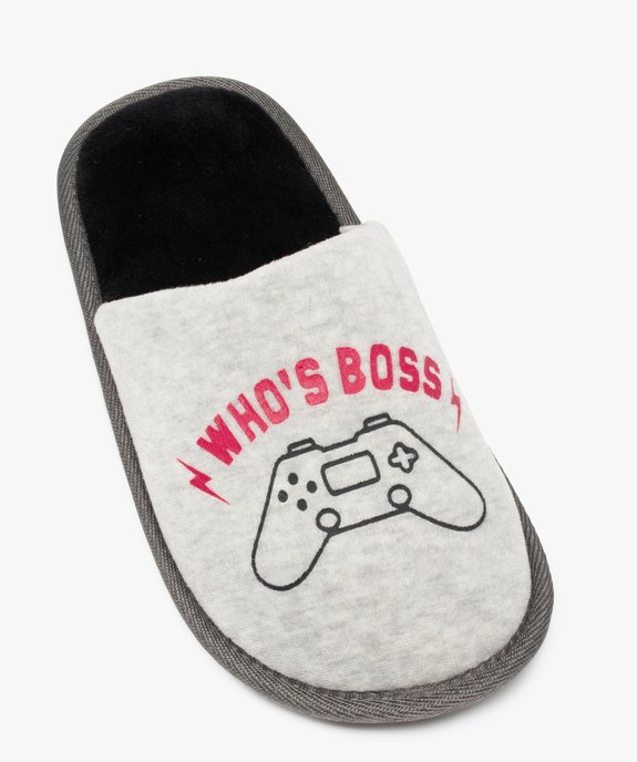 Chaussons mules en velours motif console de jeu garçon gris