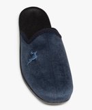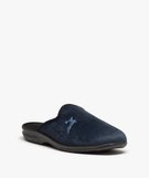 Chaussons mules en velours ras avec broderie homme bleu