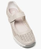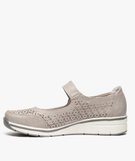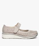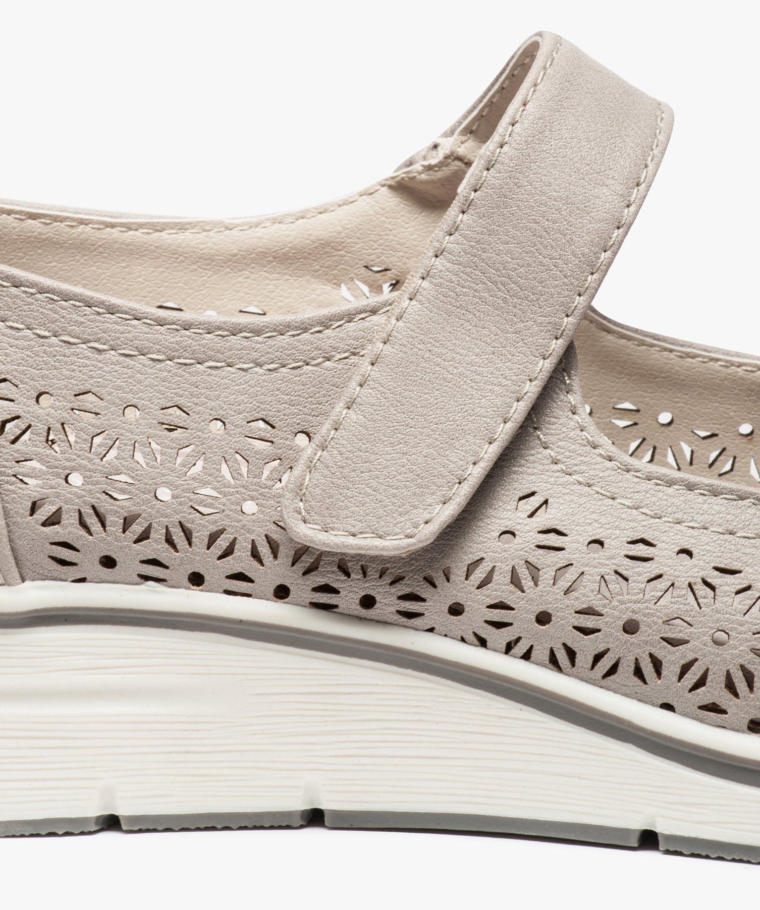 Chaussure confort femme avec dessus ajouré et talon compensé gris clair