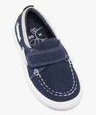 Chaussures bateau bébé garçon unies en suédine avec scratch[MISSING] bleu fonce