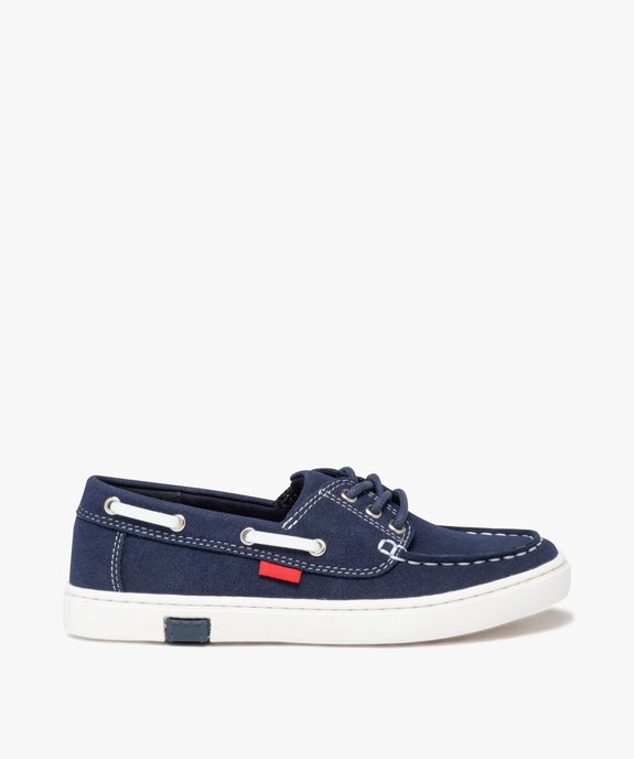 Chaussures bateau garçon en suédine et à lacets passants bleu fonce