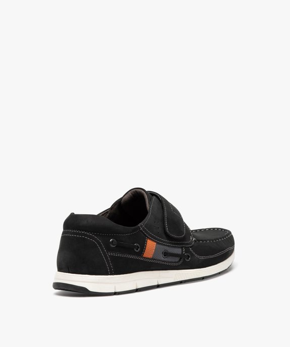 Chaussures bateau homme confort dessus en cuir uni et à scratch noir