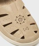 Entre ballerines et sandales, ces chaussures confort pour femme se prêtent bien à la saison estivale. La tige fermée est composée de brides perforées laissant de larges ouvertures sur le dessus. Les pieds sensibles apprécieront cette confection qui permet de protéger le pied tout en le laissant respirer. Ces sandales confort pour femme reposent sur une semelle amortissante avec petit talon confortable. Des perforations en forme de fleurs sur le dessus ajoutent une note très féminine. Un modèle incontournable pour compléter les robes, jupes et pantalons d’été au quotidien ! Fermeture bride scratch sur le cou-de-pied.