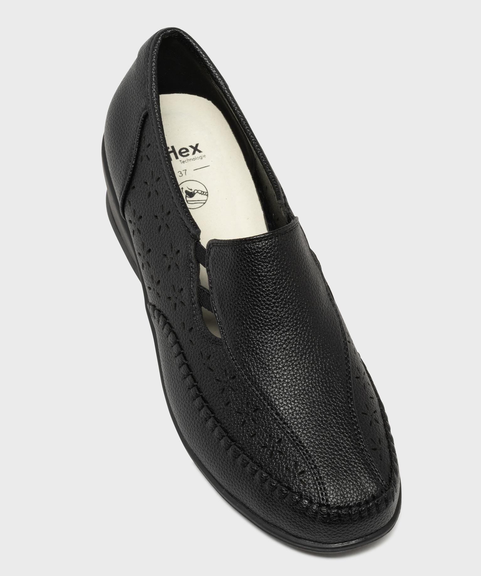 Ces chaussures confort esprit mocassins raviront celles qui refusent de choisir entre confort et élégance ! Elles subliment le pied par une jolie tige en cuir grainé imitation arborant des perforations en forme de fleurs et de jolies surpiqûres. De chaque côté de la languette, des élastiques d’aisance facilitent l’insertion du pied et garantissent un maintien confortable. Ces chaussures confort pour femme reposent sur une semelle antidérapante avec talon compensé. Elles sont dotée d’une semelle intérieure moelleuse amovible qui peut être remplacée par une semelle orthopédique.