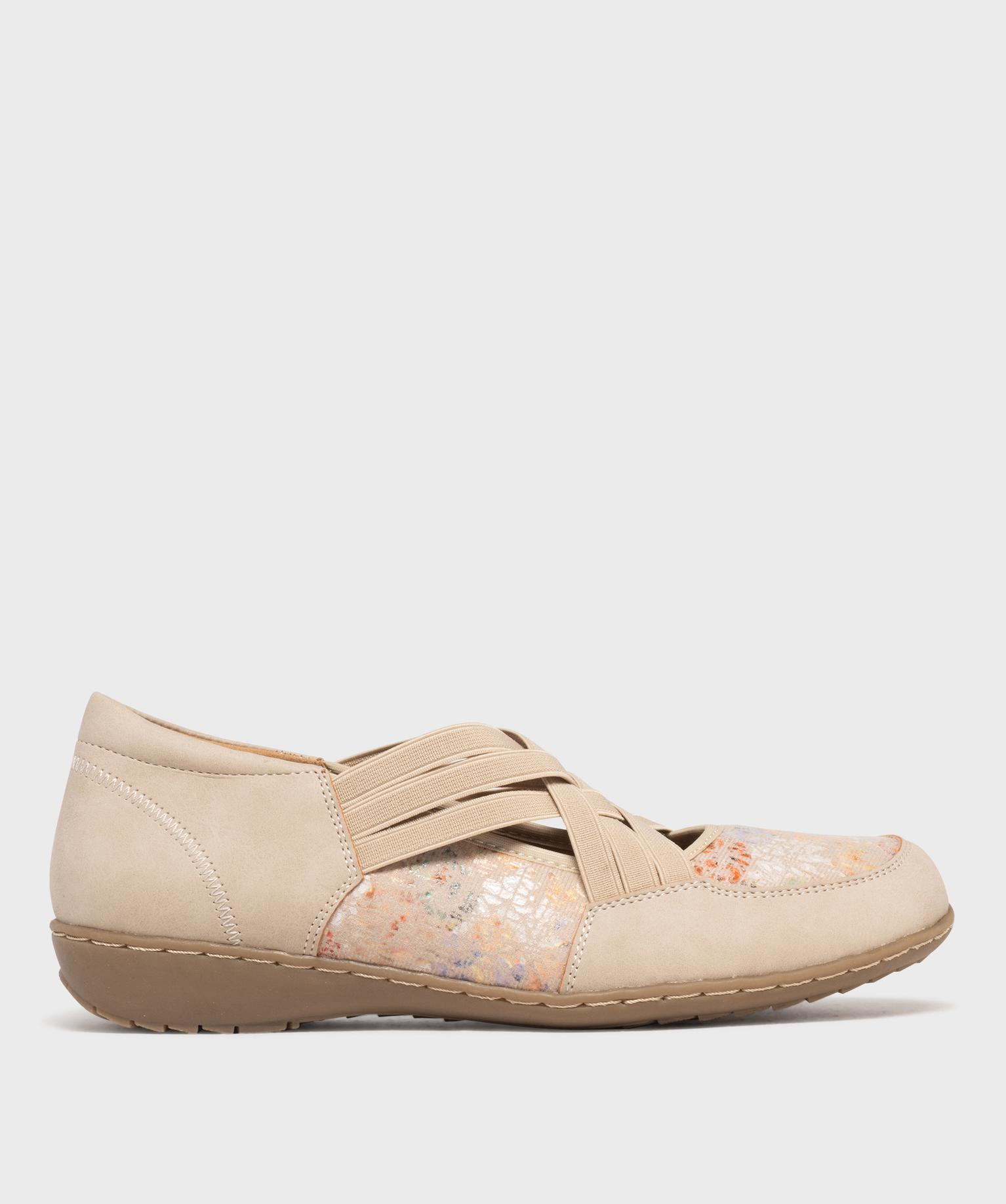 Chaussures confort avec brides élastiques femme beige clair