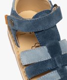 Chaussures de marche ouvertes en cuir à scratch bébé garçon - Na! bleu