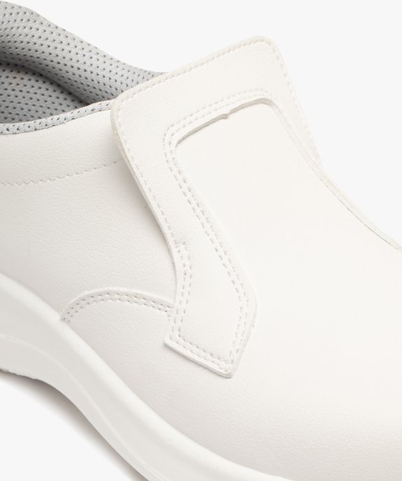 Spécialement conçues pour répondre aux besoins de nombreux environnements professionnels exigeants (agro-alimentaire, santé…), ces chaussures de sécurité aux normes EN20345-2022 sont facilement recyclables et appréciées par les écoresponsables. La tige en microfibre lavable assure légèreté et respirabilité, tandis que la semelle intérieure amovible, garantit un confort optimal. Dotées d'un embout en composite, ces chaussures professionnelles pour homme sont parfaitement adaptées aux passages de portiques de sécurité grâce à l’absence de métal et légères aux pieds. Enfin, la semelle extérieure en PU 2D assure une adhérence exceptionnelle.
