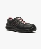 Chaussures de sécurité basses femme. 100% sans métal. Tige en cuir. Intérieur en mesh respirant. Fermeture par lacets ronds 4 œillets.