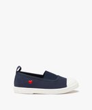 Entre la tennis en toile et la ballerine, cette chaussure fille accompagne invariablement toutes les tenues casual chic de votre enfant cet été. Indémodable, elle affiche les attributs typiques de la toile : bout renforcé en élastomère, semelle intermédiaire contrastante, large élastique sur le coup de pied… mais avec en plus une semelle intérieure ultra confortable et un petit cœur brodé sur le côté du pied. À croquer !