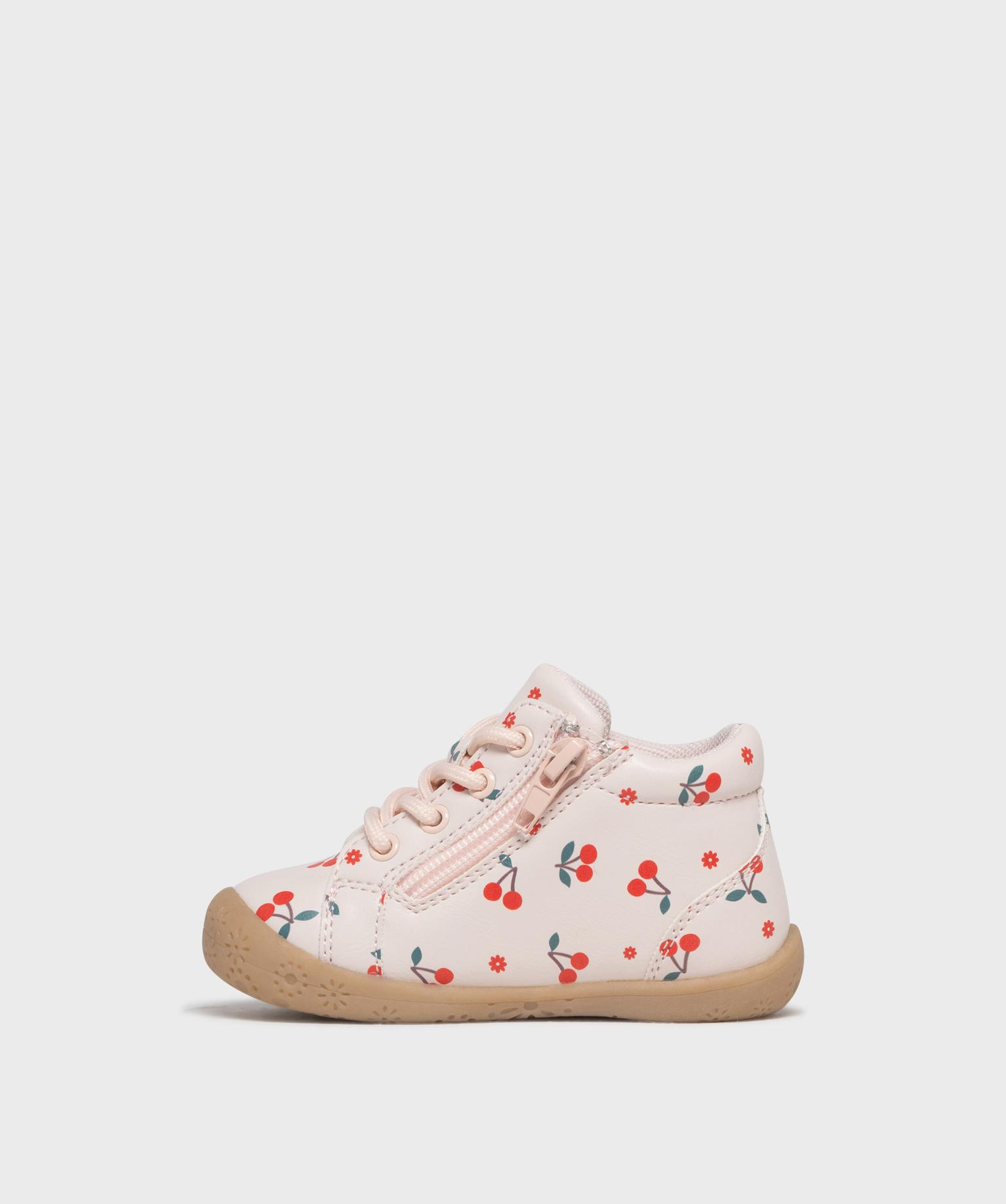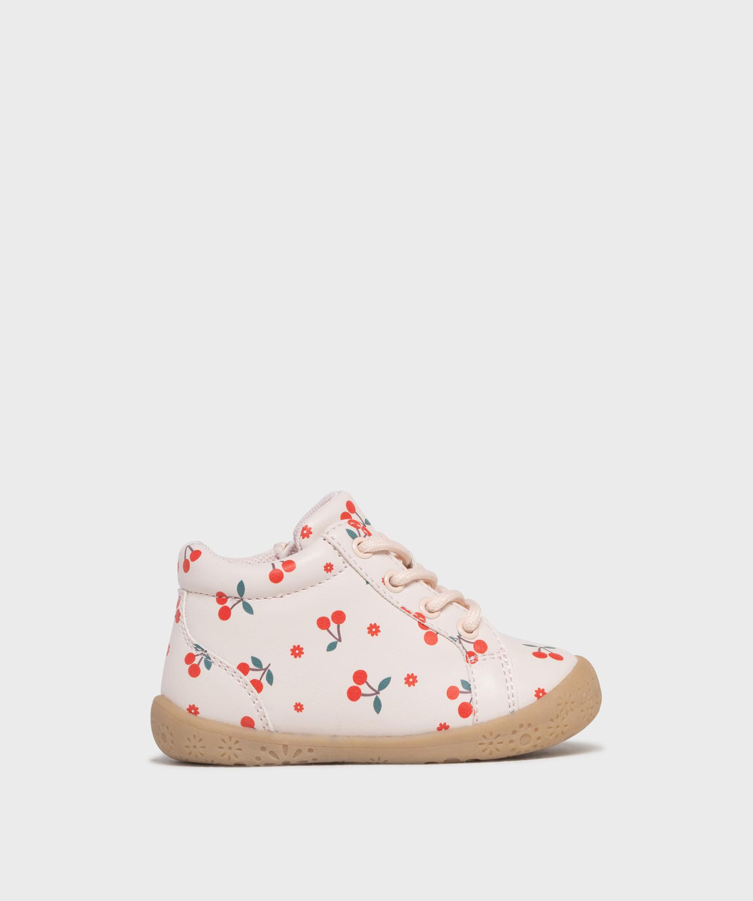 Chaussures premiers pas à motifs cerises bébé fille - Lovely Wings rose clair
