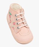 Chaussures premiers pas bébé fille bottillons en cuir et à fleurs - Kickers rose