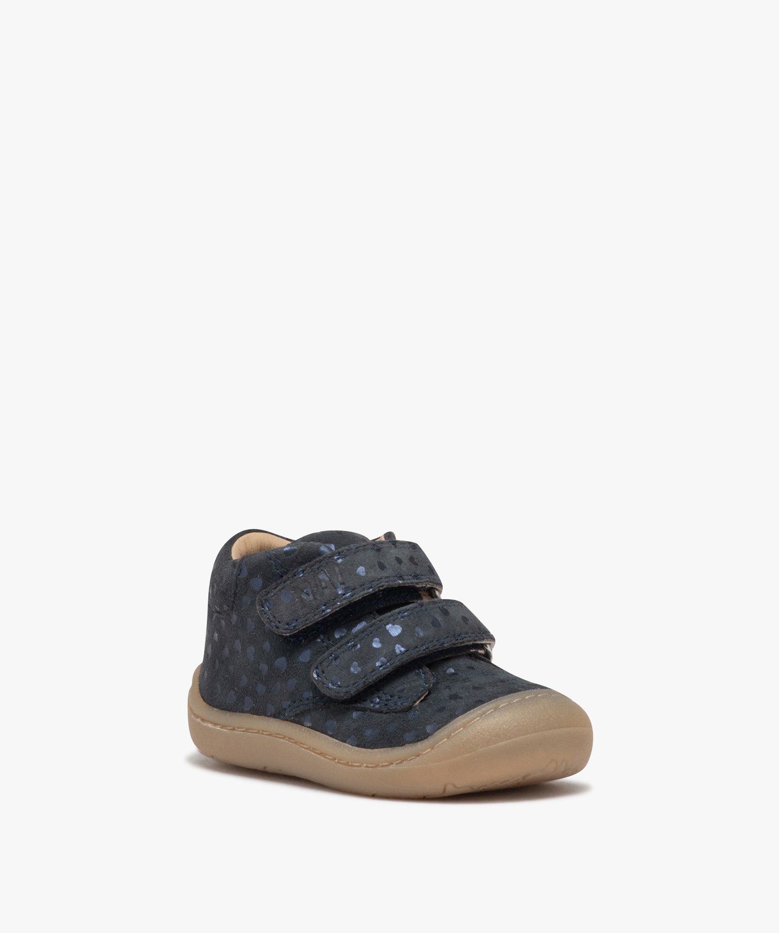 Chaussures premiers pas bébé fille unies avec double scratch à motif petits coeurs - NA! bleu chine
