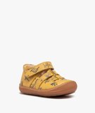 Spécialiste de la chaussure enfantine, la marque NA! propose ici des chaussures premiers pas pour bébé garçon vraiment bien pensées. Confectionnées en cuir sur le dessus, la doublure et la semelle intérieure, elles habillent le pied en douceur tout au long de la journée. Ces chaussures estivales sont ouvertes sur le dessus. Enfants et adultes vont craquer pour l’imprimé dinosaure et la semelle en élastomère imitation caoutchouc naturel ! Des chaussures souples, jolies et robustes à porter avec toutes les tenues des petits explorateurs. Fermeture facile à bande scratch sur le dessus.