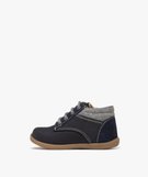 Chaussures premiers pas bébé garçon unies en cuir à col denim marine