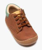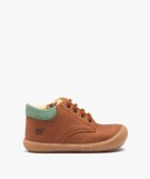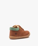Avec la confection soignée, cette paire de bottillons premiers pas pour bébé garçon a tout pour accompagner sereinement la marche et ses débuts. Avec sa semelle en gomme amortissante qui remonte légèrement sur l'avant du pied, permet une protection pied, partout où bébé s'exerce. La semelle intérieure et la doublure en cuir offre un grand confort et une respirablilité unique. Un dessus uni en cuir présente un aspect légèrement grainé à l'avant et lisse à l'arrière : on adore ! Ces chaussures premiers pas s'ajustent à l'aide de lacets plats 4 oeillets métalliques. Fermeture zippée sur le côté interne du pied.
