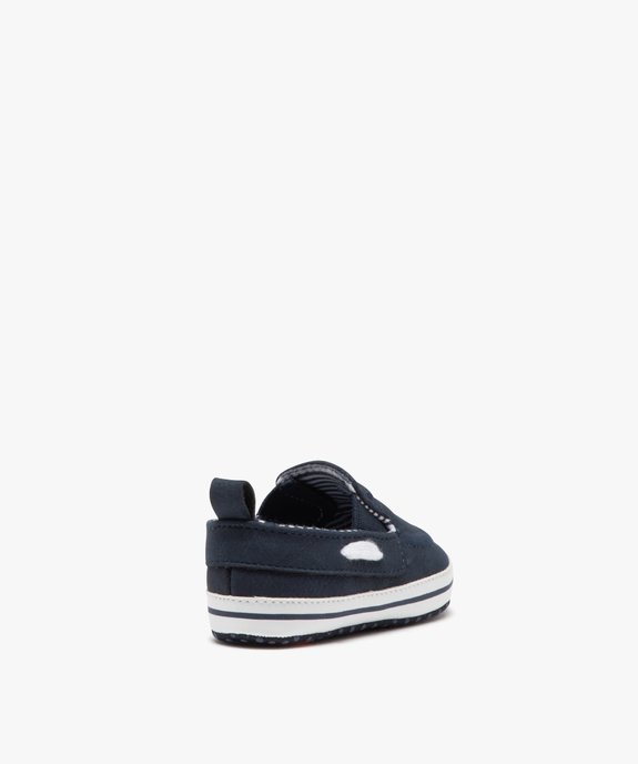 Chaussures premiers pas bébé garçon unies style slippers bleu fonce