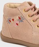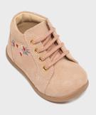Assurez les premiers pas de votre petite princesse avec ces jolies chaussures premiers pas NA! De jolies chaussures bébé fille entièrement confectionnées en cuir - dessus, doublure et semelle intérieure - décorées de sublimes broderies fleuries sur le côté. Elles se ferment à l’aide de lacets incrustés de fil pailleté et reposent sur une semelle antidérapante idéale pour assurer une parfaite stabilité. Des chaussures girly à porter aussi bien avec une robe qu’avec un pantalon.