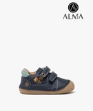 Chaussures premiers pas en cuir souple à double scratch bébé garçon - Alma[MISSING] bleu fonce