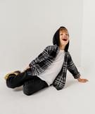 L’incontournable chemise à carreaux se pare d’une capuche unie pour assurer un maximum de style aux enfants. Une chemise garçon confectionnée en coton et fermée par des boutons pression. Elle possède une poche poitrine également fermée par pression. Cette chemise à capuche s’intègre parfaitement à tous les looks streetwear, portée ouverte sur un tee-shirt et associée à un jean large et des baskets. Bas arrondi plus long au dos.